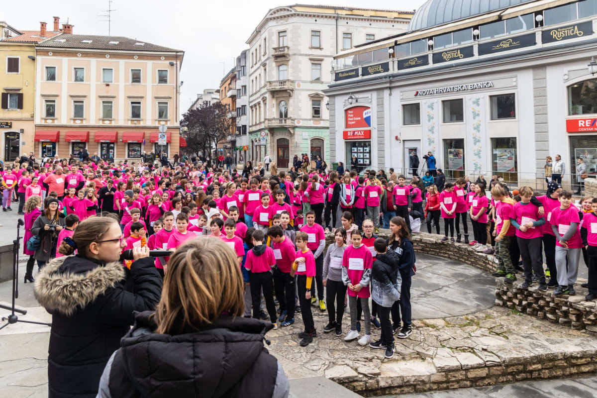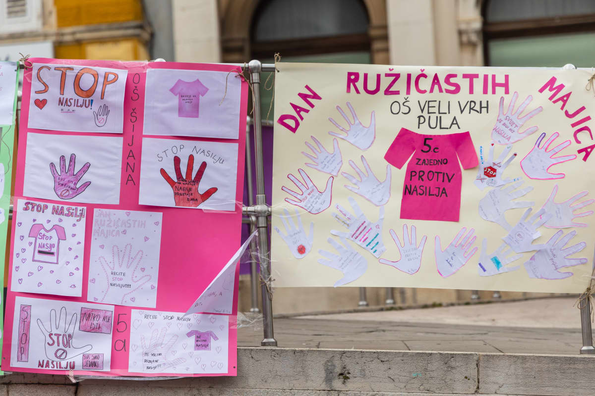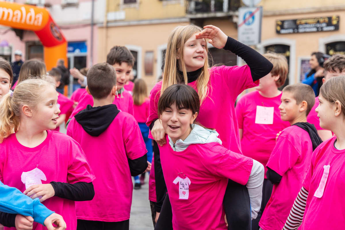 Oko petsto učenika petih razreda osnovnih škola i policijski službenici PU Istarske, danas su zajedničkim snagama istrčali utrku pod nazivom „Trkom protiv nasilja“ i na taj način obilježili Dan ružičastih majica. Start utrke bio je točno u podne na Trgu Portarata, a kružna trasa duljine 1200 metara provela je trkače kroz ulice i trgove najužeg centra grada: Giardine, Istarsku, Amfiteatarsku i Carrarinu ulicu.