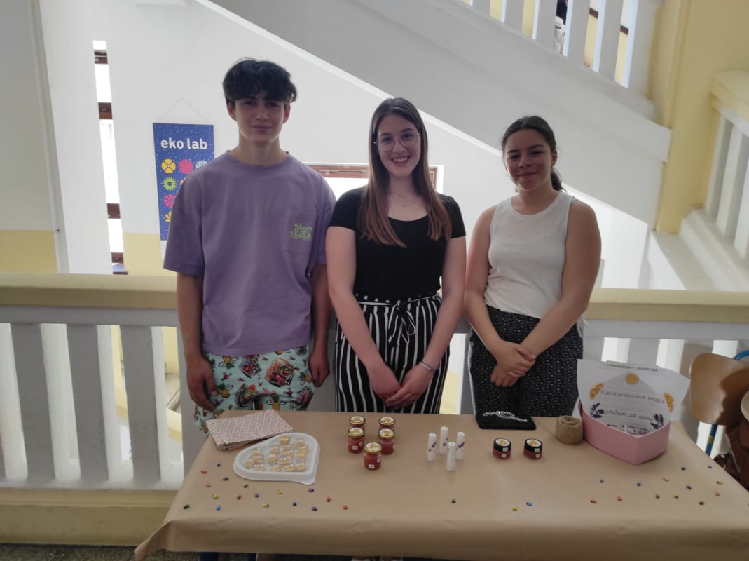 Za to je vrijeme u ulazu i prizemlju škole održana prodajna izložba prirodne kozmetike nastale u sklopu izborne nastave iz kemije, a svi su učenici na Zidu slave "Ostavi svoj trag" mogli na panou napisati neku svoju dragu pjesmicu, stih, moto, potpisati se i tako i simbolično - ostaviti trag.
