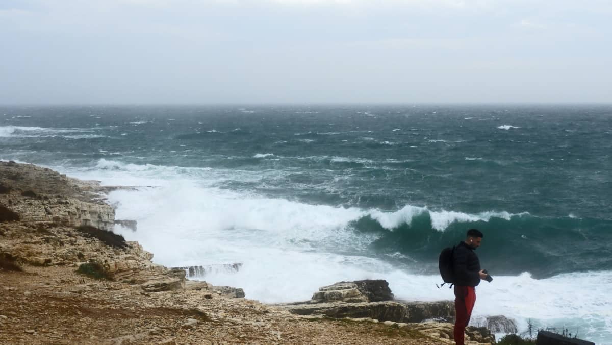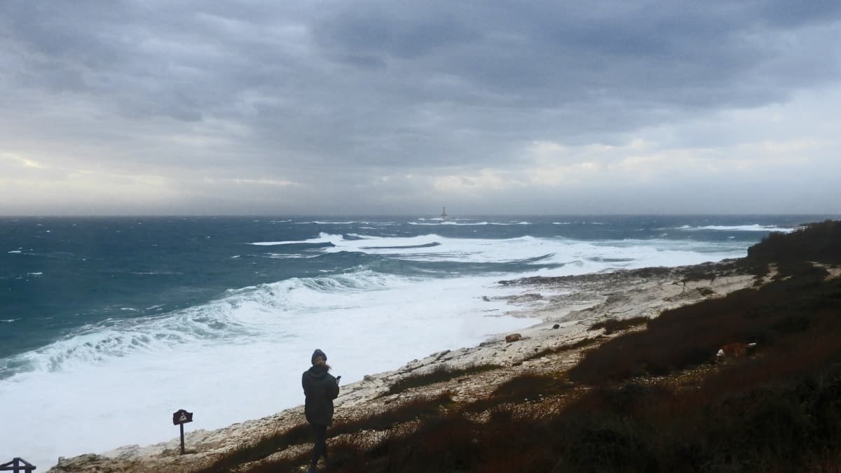 (FOTO/VIDEO) Olujni južni vjetar pokazao svoju snagu na Kamenjaku i pulskoj Verudeli. Oblaci morskih kapljica letjeli stotine metara unutar kopna
