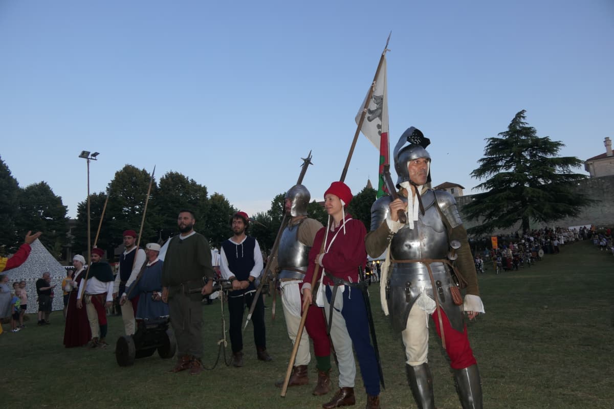 Na samom ulazu u Dvorac Morosini Grimani snažni vitez prosio je dame ljubeći im ruke, te muškarcima dozvoljavao da rukuju s mačem, pokazujući im pravilno držanje i rukovanje. Unutar dvorca, s mnoštvom posjetitelja, već su započele borbe vitezova s pravim oružjem i oklopima koji su ih štitili od oštrih sječiva mačeva.