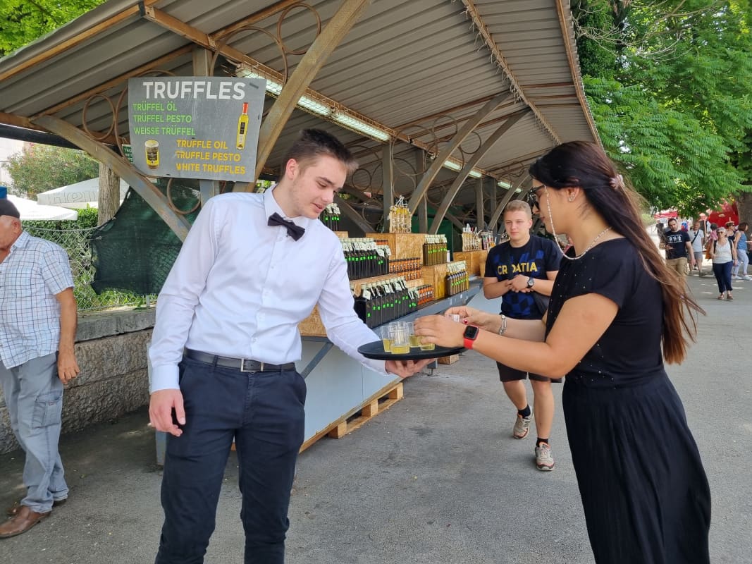 - Ugostiteljska ponuda i mladež svojom vedrinom privlači pozornost, a i učenici zaista lijepo prezentiraju svoja zanimanja, kazala nam je Željka Kondić Dabo iz Škole za turizam, ugostiteljstvo i trgovinu Pula.