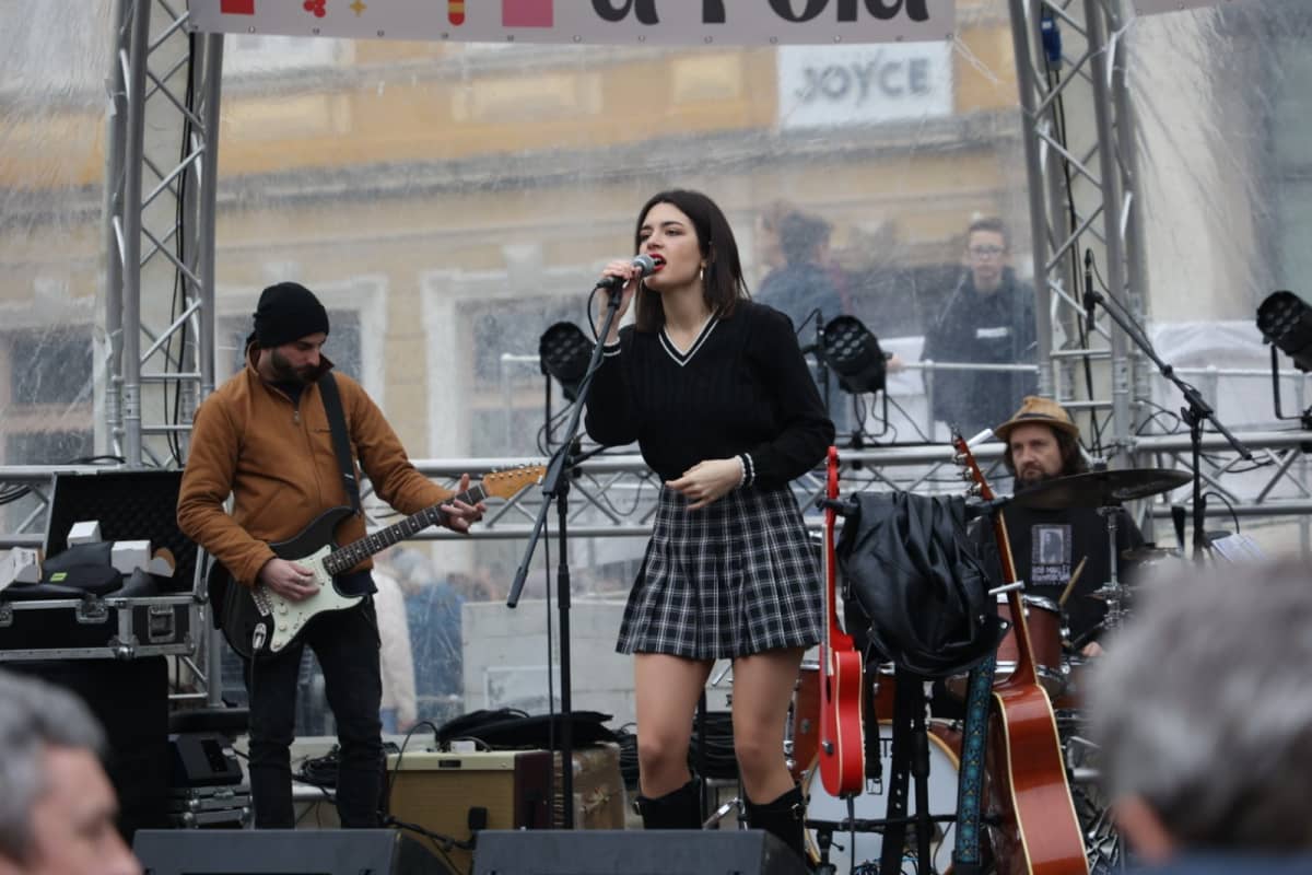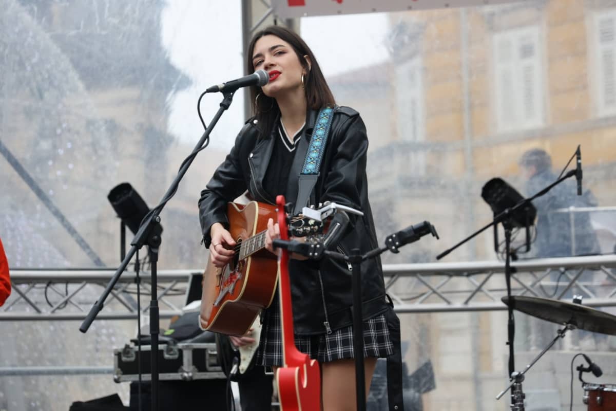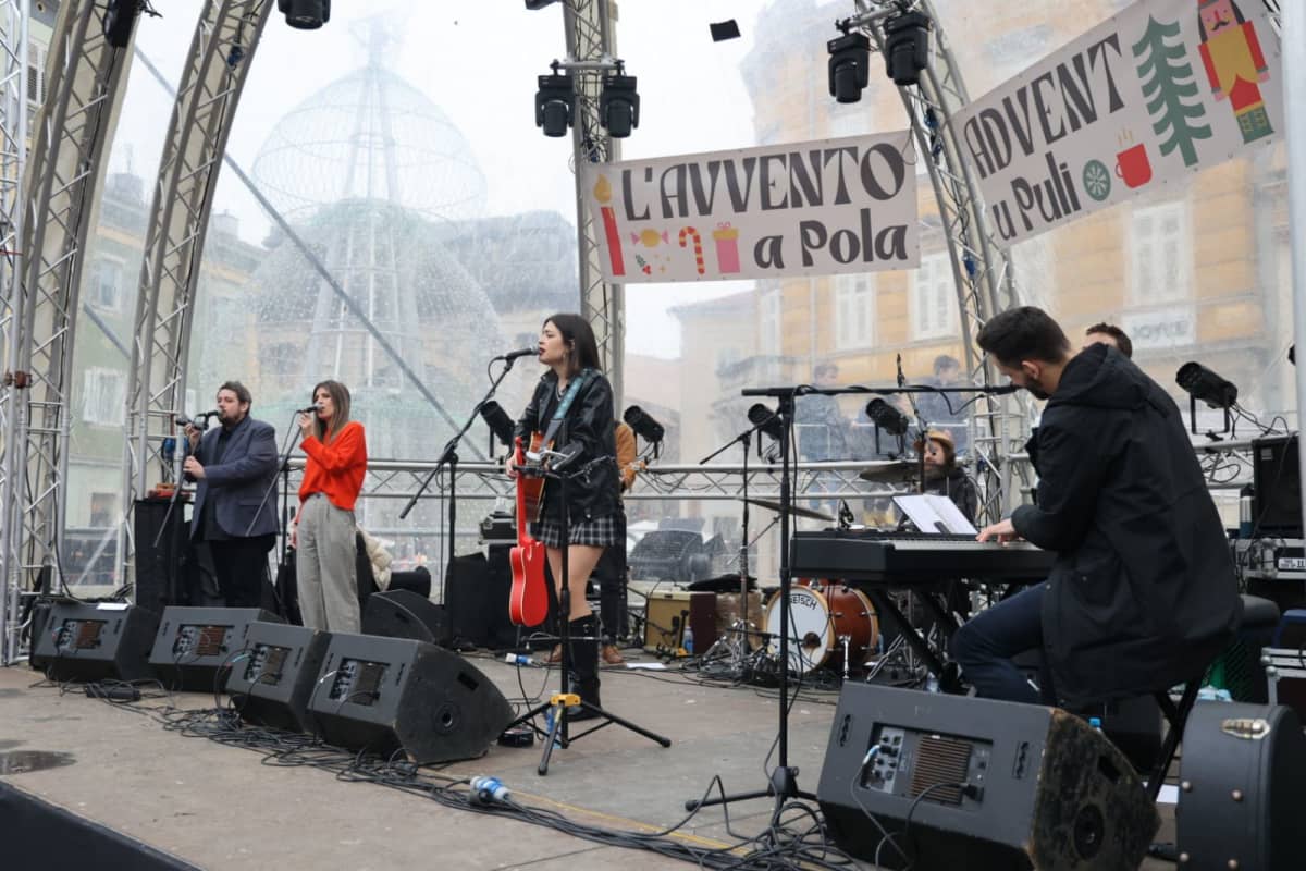 Nakon što su krenuli s proslavom Nove godine jutros u 10 sati, na tržnici gdje je servirano 400 porcija fritaje uz glazbeni nastup Anelida i Vesne Nežić Ružić, Puljani su nastavili druženje i "dnevni ispraćaj u podne" stare godine na Portarati, gdje je pjevala mlada kantautorica Mia Dimšić.