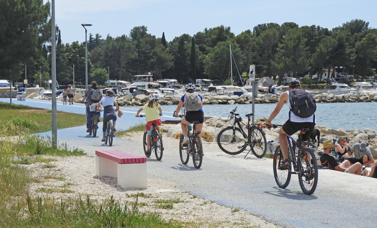 Šetnica koja se od Hidrobaze nastavlja sve do perojske luke je idealna za bicikliste, kojih svake godine ima sve više, od onih koji pedaliraju do onih koji bivaju voženi.