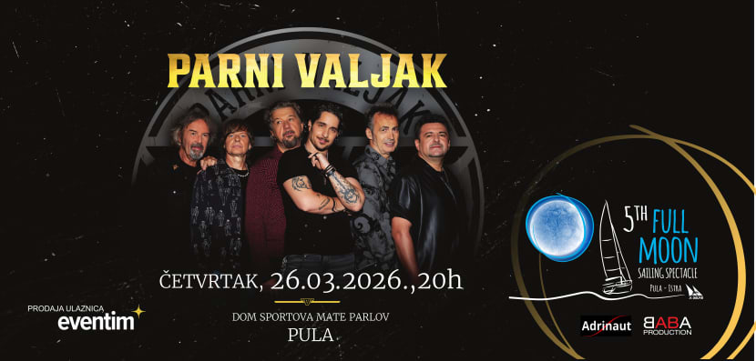 Vrhunac prvog dijela manifestacije slijedi u četvrtak, 26. ožujka 2026., kada će u Dom Sportova Mate Parlov biti održano svečano otvorenje proljetne sportske i jedriličarske sezone krstaša – uz veliki koncert sastava Parni Valjak. Ovaj koncert ujedno je i proslava malog jubileja – pet godina manifestacije Full Moon Sailing Spectacle. Publiku očekuje pravi proljetni spektakl u dvorani u kojoj su se kroz generacije stvarale sportske pobjede i uspjesi. Parni Valjak, jedan od najdugovječnijih i najutjecajnijih hrvatskih pop-rock sastava na sceni od 1975. godine, svojim bezvremenskim hitovima poput „Sve još miriše na nju", „Jesen u meni", „Uhvati ritam", „Zastave", „Dođi", „Ugasi me" i „Moja je pjesma lagana" okuplja sve generacije i stvara uspomene koje ostaju. Zagrijavanje za koncert počinje u 18:30 sati, dok koncert započinje u 20:00 sati.
