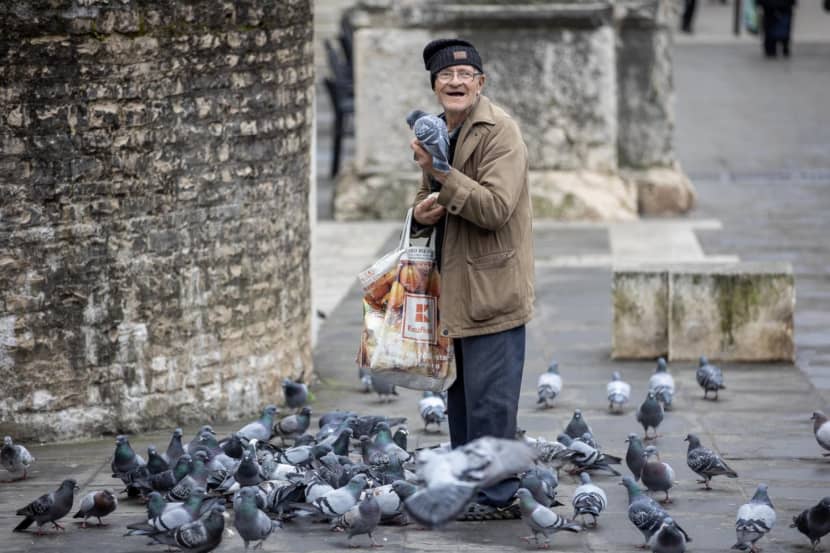 Mujo je godinama, uvijek nasmiješen, dolazio u centar grada i hranio gradske golubove. Bilo ljeto ili zima, od tog rituala nije odustajao. Te su mu ptice, uz njegove mačke, značile cijeli svijet i često je prije kupovao hranu njima nego sebi.