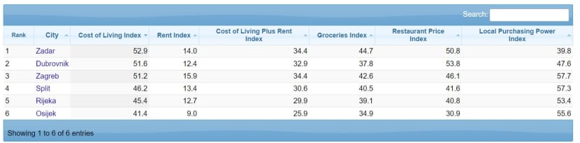 Hrvatske cijene prema procjeni stranice Numbeo dostupne su na ovoj poveznici.