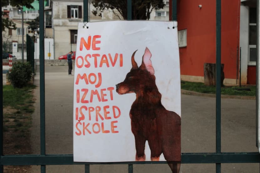 Problem psećeg izmeta na javnim površinama, osobito u blizini škola, sve je izraženiji i predstavlja ne samo estetski, već i sigurnosni i higijenski problem. Takva praksa je već duže vremena prisutna uz nogostup Osnovne škole Kaštanjer u Puli, a kojoj su učenici kroz kreativni rad i jasne poruke, odlučili stati na kraj, i to sa svojim radovima gdje je jasno istaknuto da žele da takvo ponašanje neodgovornih vlasnika pasa prestane.