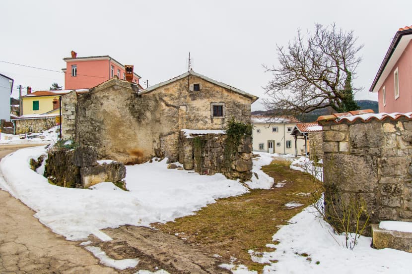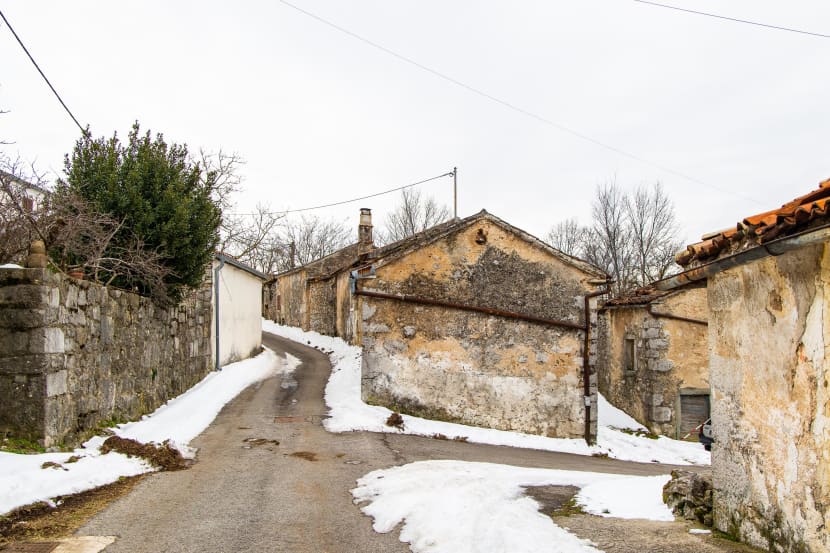 Zime su ovdje surove. U ostatku Istre bijeli pokrivač koji je minulog tjedna prekrio krovove sve tamo do krajnjeg juga, već je postao blijeda uspomena. Ali ne i ovdje. U Vodicama i Jelovicama ima ga do gležnjeva, prilazi kućama još se uvijek čiste lopatama, poledica je okovala veći dio uličica u naseljima, pa se hod ima prilagoditi skliskom tlu. Podne je, ali temperatura je i dalje u minusu.
