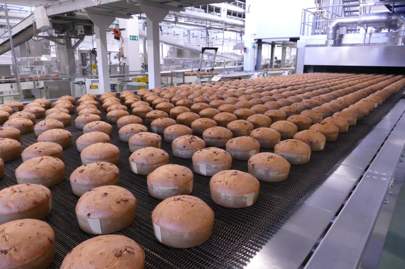 Stoljećima se panettone pekao u pećima nekolicine slastičarnica u sjevernoj Italiji; industrijska proizvodnja, također u Milanu, započinje tek 1919. godine sa slastičarima Angelom Mottom i 1921. s Gioacchinom Alemagnom. Uz Bauli, Paluani, Melegatti i Bistefani, i danas su Motta i Alemagna najpoznatiji bredovi industrijskih panettonea. Danas se u Italiji proizvodi oko 100 milijuna panettona godišnje, što znači čak 274.000 panettona dnevno.