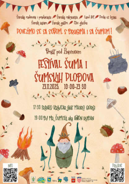 Festival šuma i šumskih plodova, koji će se održati u nedjelju, 23. studenoga u Brestu pod Žbevnicom, od 10:00 do 23:30 sati.