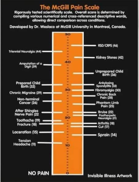 Dr. Lattinger: prema slavnom McGill Pain Indexu iz 1971., ankilozantni spondilitis je prema jačini boli koju oboljeli podnosi jednak boli pri porodu djeteta. Na skali je malo ispod boli kod amputacije prsta, i malo iznad boli koju zadaje fibromialgija ili kronična migrena.