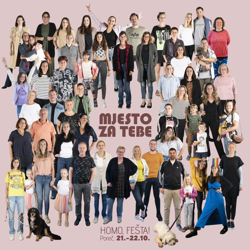 Homo, fešta! je LGBTIQ+ festival koji se po sedmi put održava u Poreču. Ovogodišnji vizual festivala čine naše sugrađanke i sugrađani, susjedi, none, učiteljice, prijatelji, kolegice, osobe koje naš grad i županiju čine ljepšim mjestom za život.