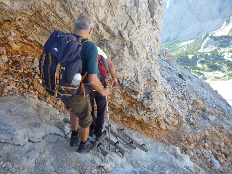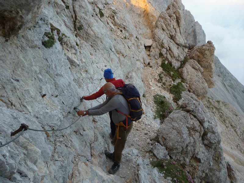 Jednoga dana staza ih je dovela do ruba litice – put do doline vodio je strmom stazom uklesanom u stijenu, a pred samom dolinom čekalo ih je još desetak metara okomite stijene ili, kako Feručo voli reći, „odsječenog brda“. Kretanje ovim potezom bilo je moguće samo po čeličnim klinovima, a sigurnost je pružala tek sajla pričvršćena za kamen.