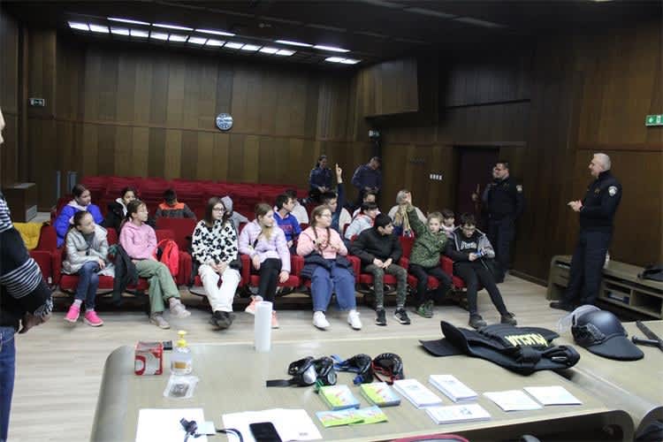 Policijski službenici dočekali su vesele mališane te su im predstavili što sve radi policija i kako izgleda jedan radni dan policajca, a načelnik pulske policijske postaje Vjekoslav Vukšić odgovarao je na brojna pitanja koja su djeca imala o policijskoj službi i policijskim postupanjima, ocjenjivanju policajaca i njihovom obrazovanju.