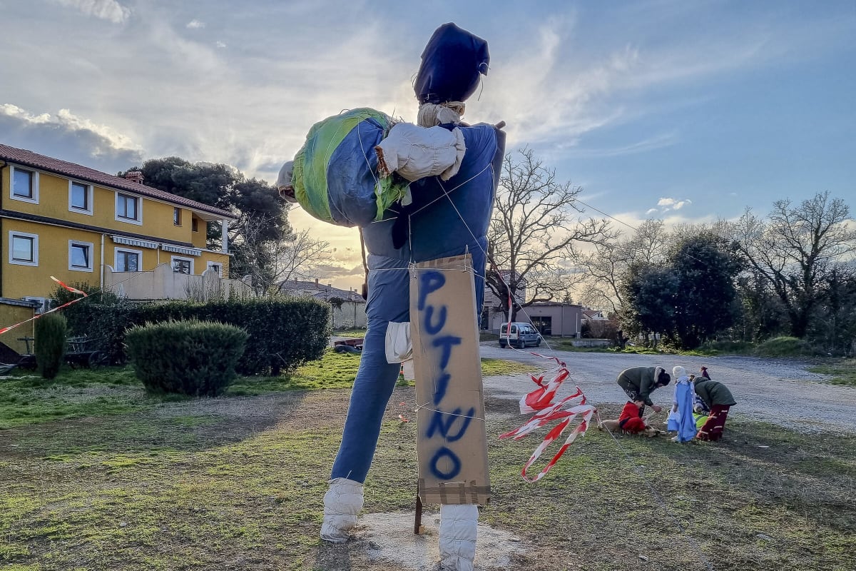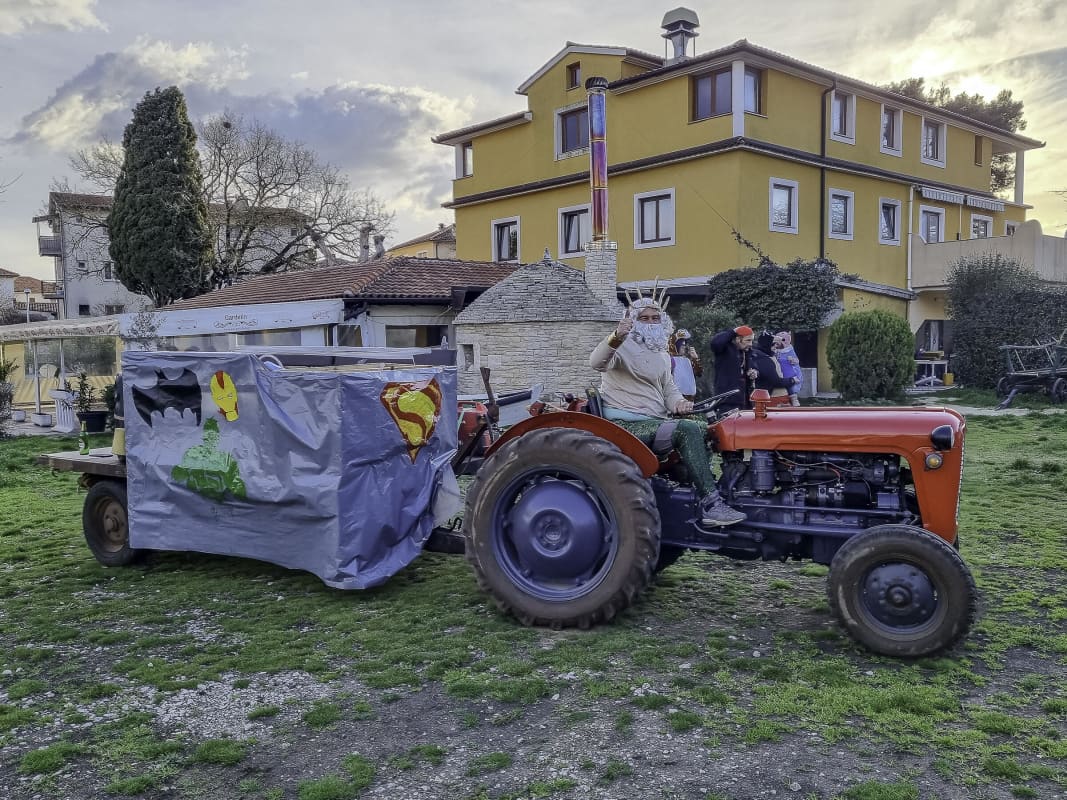Ta naša mala maškarana kunpanija se peljala cili dan po Monte Grandu z traktorom od hiže do hiže kako tradicija išće, a pokle su finili tamo od kud su i partili, poli pusta ki je dobija svoje ime i ki će lipo zgoriti u utorak navečer poli vajk svene oštarije ku nećemo pominjati, ma svi znaju ka je, jer je tamo već 100 lit.