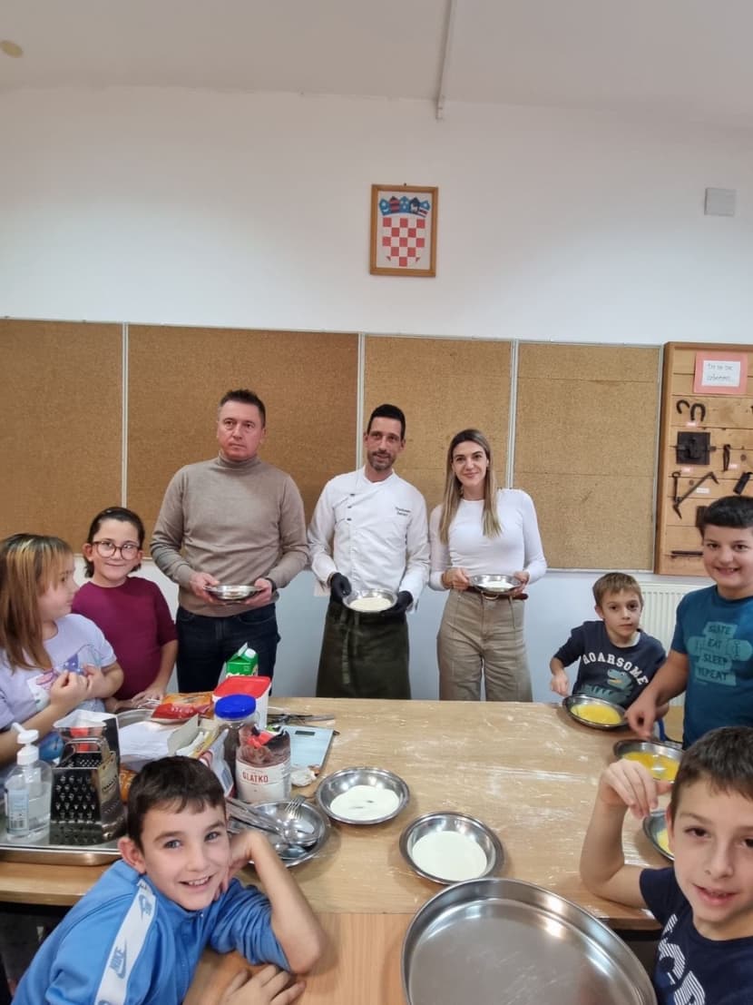 U radionicama koje je vodio poznati chef Gianpaolo Sardot sudjelovali su učenici od 1. do 4. razreda: izrađivali domaće krokete od krumpira, koji će se moći uvrstiti i u školski meni * „Ovakve su radionice izuzetno vrijedne jer potiču kod djece svijest o zdravoj prehrani, lokalnim namirnicama i važnosti tradicije", rekao je ravnatelj škole Predrag Brkić