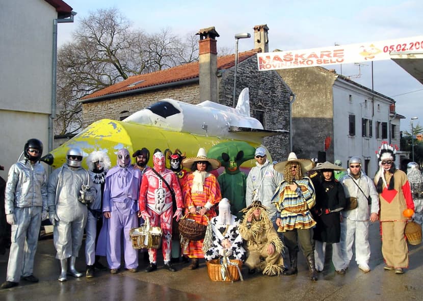 Prema narodnim predajama povijest maškara u Rovinjskom Selu je jako duga, a vjerojatno je taj običaj preuzet iz venetskih koji su se gajili u obalnom području Istre sa većinskim talijanskim stanovništvom.
