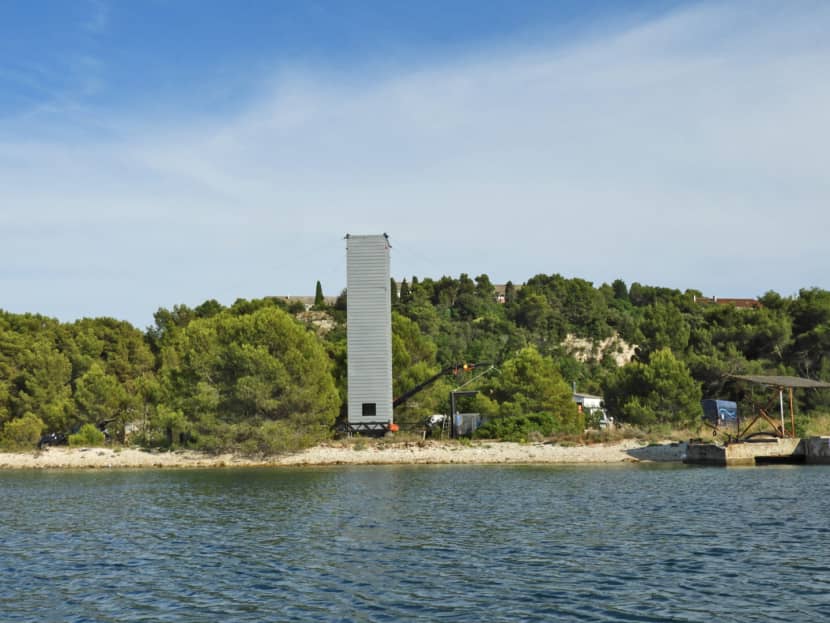 Ono što se vidi s obale je da se tamo nalaze dva krana, te jedna kupola i mnoštvo ljudi oko nje.