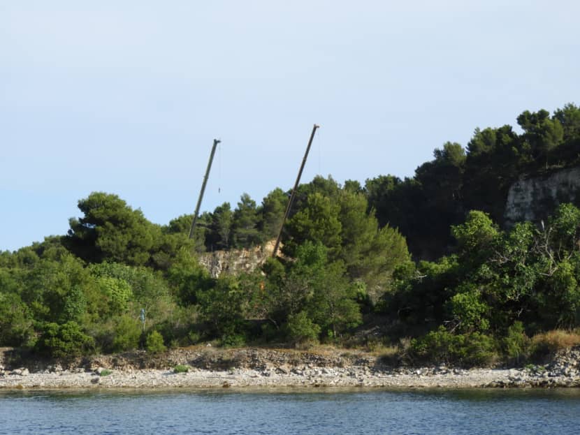 Nešto se na poluotoku Muzilu nešto gradi, ili samo postavlja. Prošli smo s barkom u neposrednoj blizini mjesta radova i od nekoliko sportskih ribolovaca koji su pecali s obale Muzila dobili informaciju kako se tu nalaze neki "Amerikanci", obzirom da svi pričaju američki engleski, te, koliko su oni čuli, da rade neki reality show.