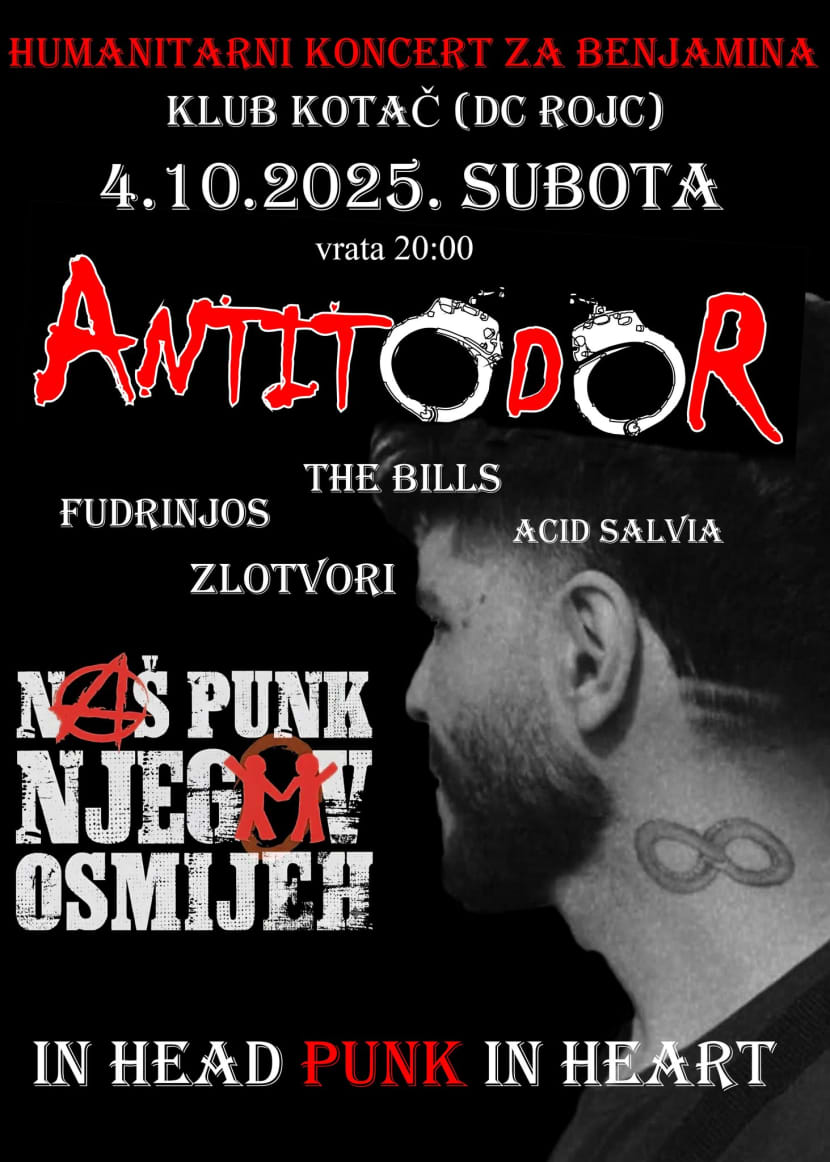 Nastupaju AntiTodor (punk/rock, Pula), The Bills (punk/rock, Rovinj), Zlotvori (HC punk, Umag), Fudrinjos (HC punk, Pazin), Acid Salvia (rock, Rovinj), a sav prihod od ulaznica i mercha ide u dobrotvorne svrhe.