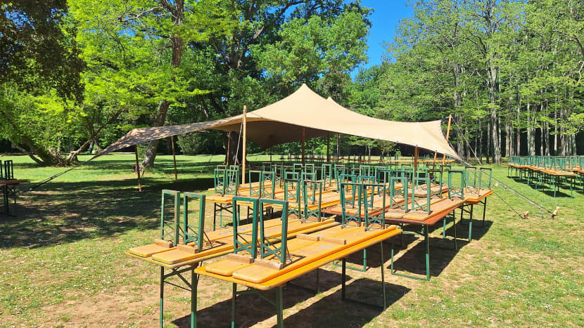 Stolovi i stolice su postavljeni, ali i šator koji će zasigurno biti popunjen starijim posjetiteljima koji će se 'skrivati' od sunčevih zraka.