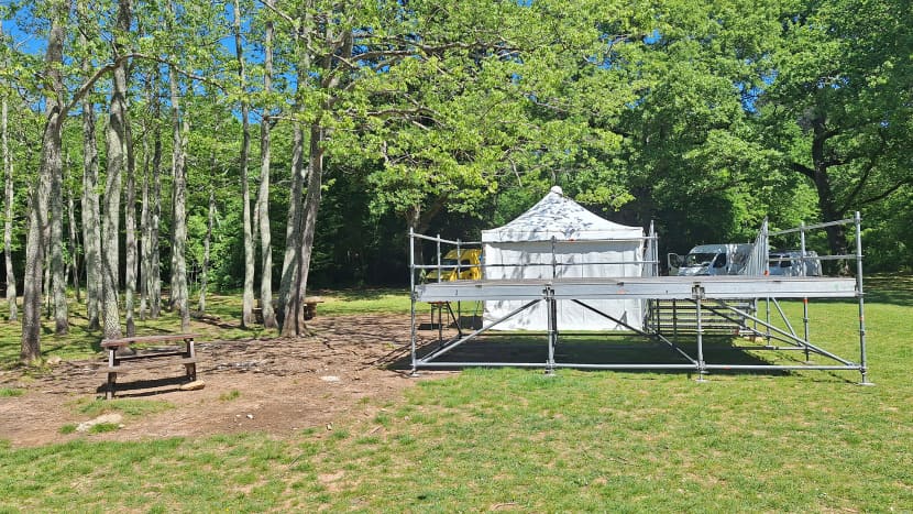 Podignuta je improvizirana metalna bina za nastupe koja će zamijeniti nekadašnju drvenu koja je nedavno uklonjena zbog dotrajalosti.