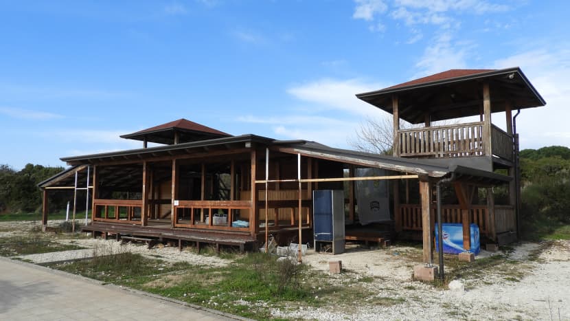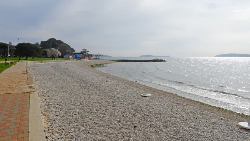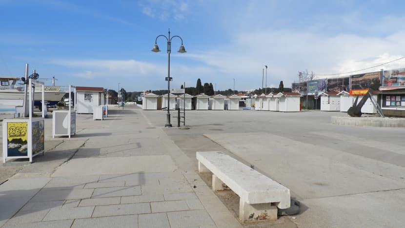 Beach barovi, poput malih bunkera, čvrsto su zatvoreni, štandovi također, a zastavice na njima potrgali su zimski vjetrovi.
