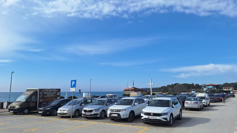 Parkiramo se na najvećem parkiralištu u Fažani – Badelovu parkingu. Dobrano je popunjen vozilima, za razliku od ostalih u mjestu, koji zjape prazni.