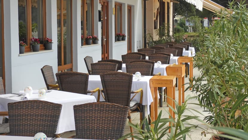 Idemo dalje. Terase ostalih ugostiteljskih objekata potpuno su prazne. Iako uredno složene, kao da “zovu” posjetitelje da sjednu i nešto kušaju.