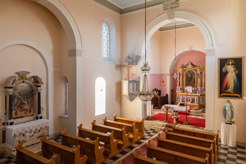 Nekoliko koraka od bivše škole leži župna crkva svetog Ivana Krstitelja. Izgrađena je još 1694. godine, a obnovljena 1906. Zaključana je, ali imamo sreće jer Marija ima ključ. Crkvu, naime, čisti njezina nevjesta.