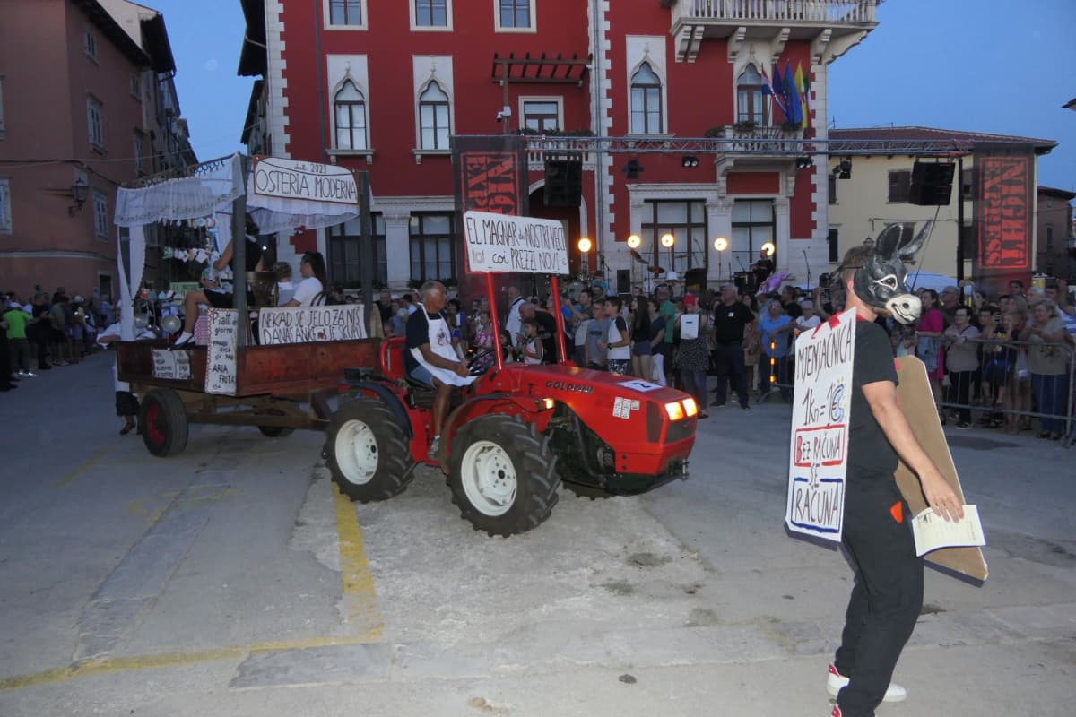 Alegorijska kola sastavljena od Vodnjanaca su pogonjena traktorima svojim defileom predstavila umješnost u izražavanju trenutnih društveno-političkih događanja.