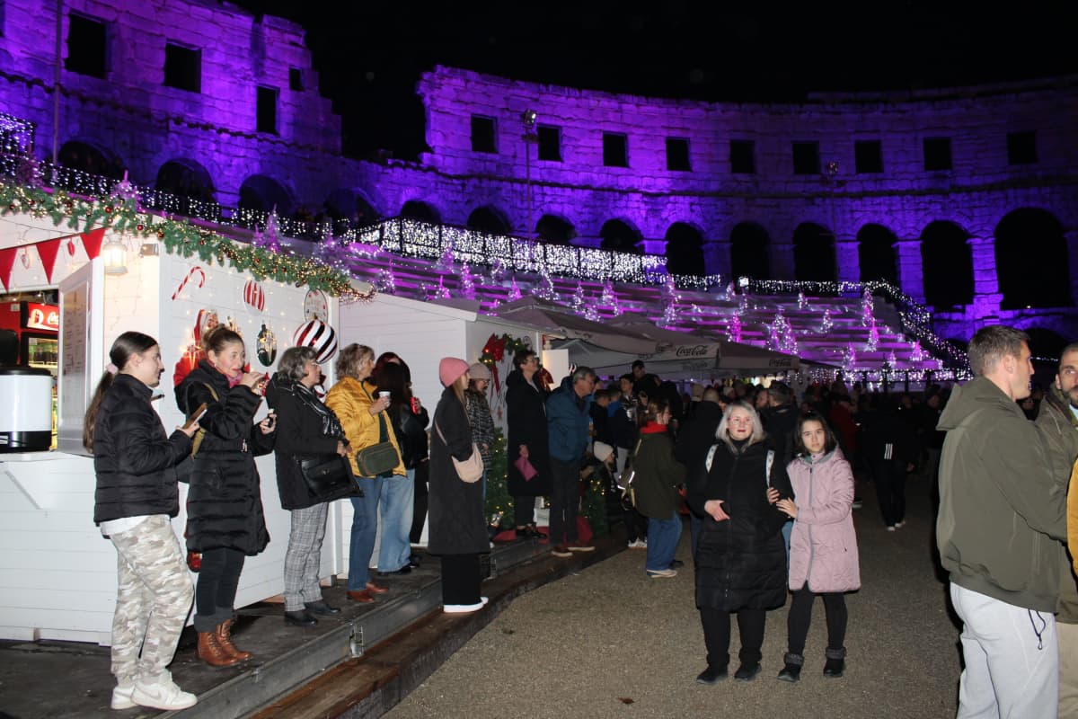 Konstatirati da svi putevi u Puli, ovog Adventa, vode u spektakularno ukrašen Amfiteatar, nije daleko od istine. Na ulazu u Arenu prisutna je stalna protočnost posjetitelja, od kojih najviše prevladavaju roditelji s malom djecom, ali i oni željni druženja uz kuhano vino ili neki drugi topli napitak.