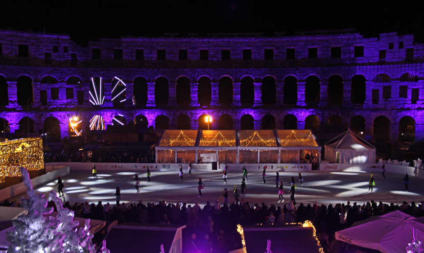 (VIDEO) SVI PUTEVI VODE U ARENU Otvorenje klizališta u pulskom amfiteatru donijelo posebnu zimsku čaroliju