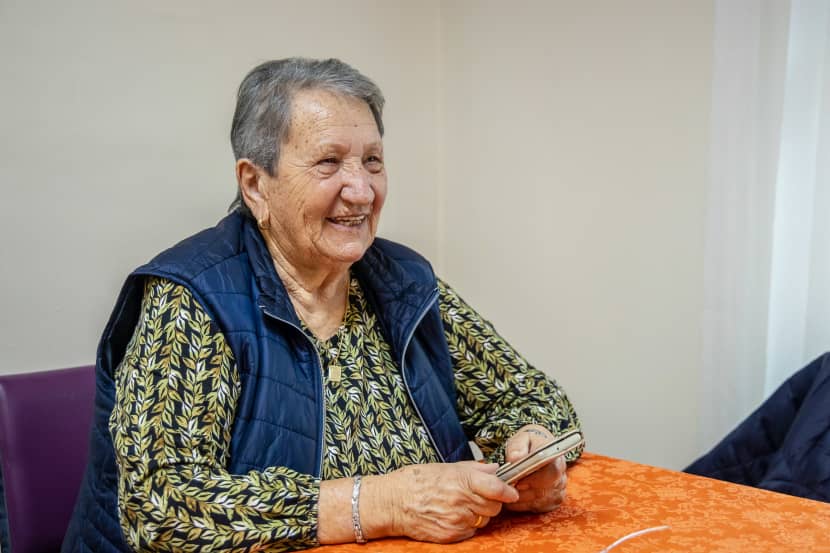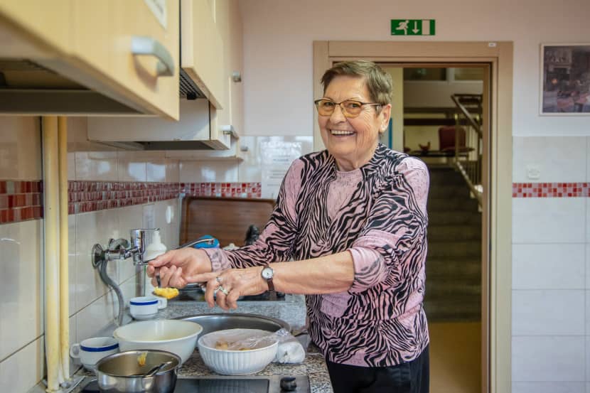 S toplim fritulama ulazi vedra gospođa Milka Mučić koje ih je sama spremila u zajedničkoj kuhinji. Četiri je godine u Domu. Muža je izgubila prije 17 godina, ima djecu i tri unuke.